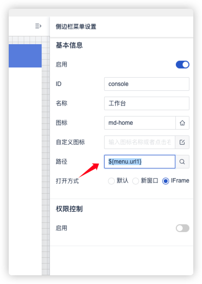 导航菜单的地址,也支持动态读取环境变量,可以在地址栏输入 ${环境变量} ,环境变量来自于 application.yml 。