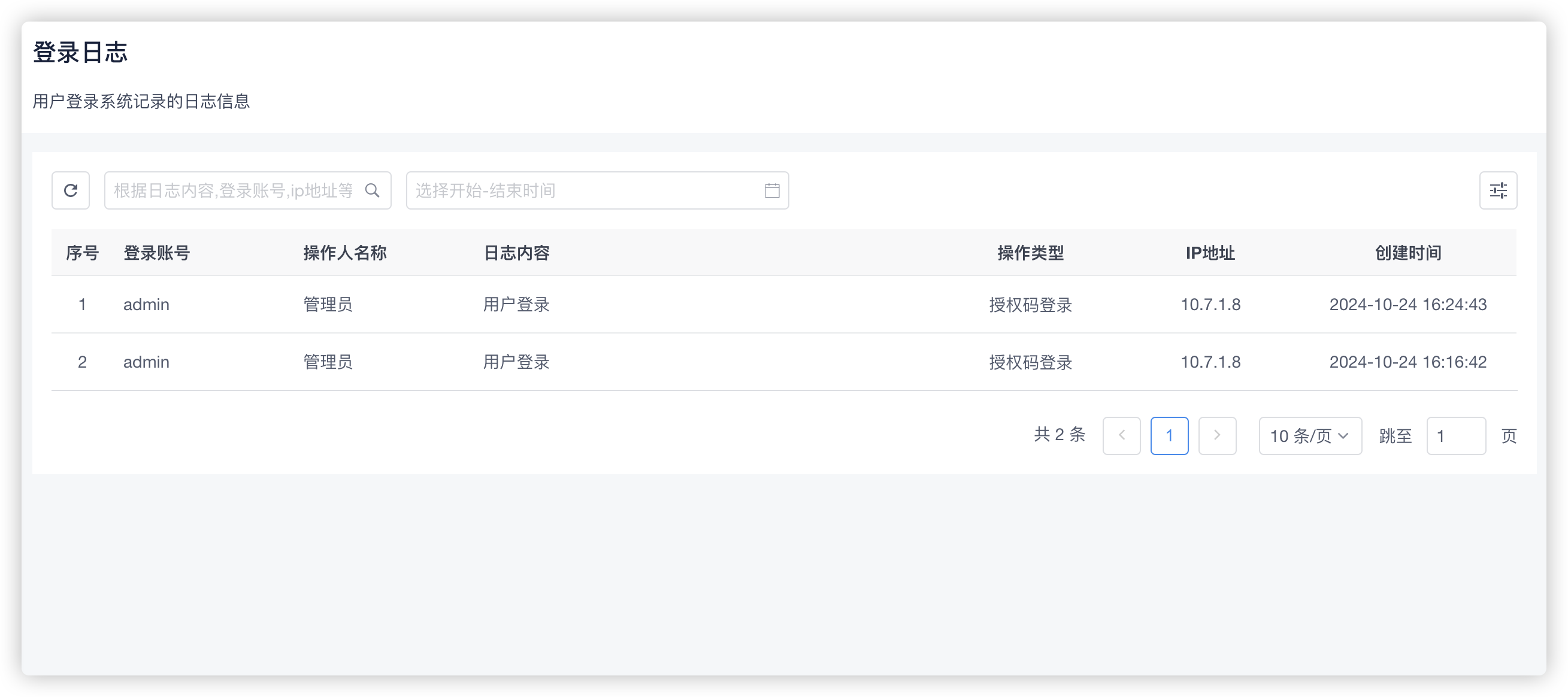页面地址:/lowcode/syslog.login,在导航页中配置导航路径为该地址。该模块在1.8.8后续的版本中新增,在添加之前需要先调整下登录模式,修改为授权码登录,才能在应用侧获取到登录日志,登录模式调整不会影响业务应用的运行。参考:授权码模式登录