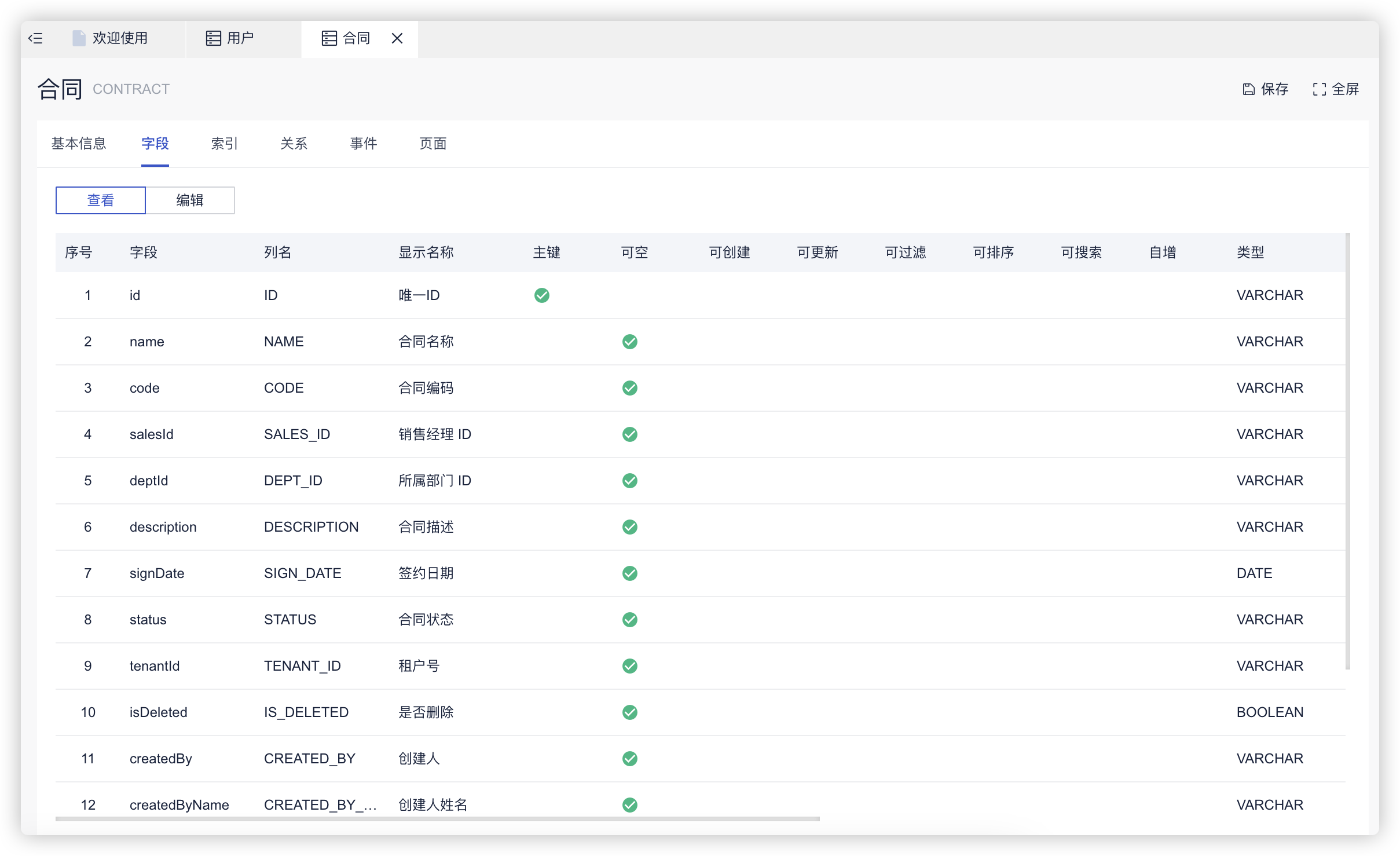 导入的实体数据,存储在 app/entities/ 目录下。合同实体元数据结构如下: