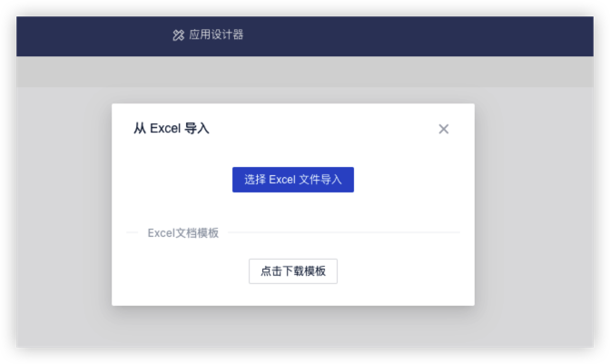 在低代码IDE中,选择从Excel导入, 下载Excel模版,填写完后上传即可。