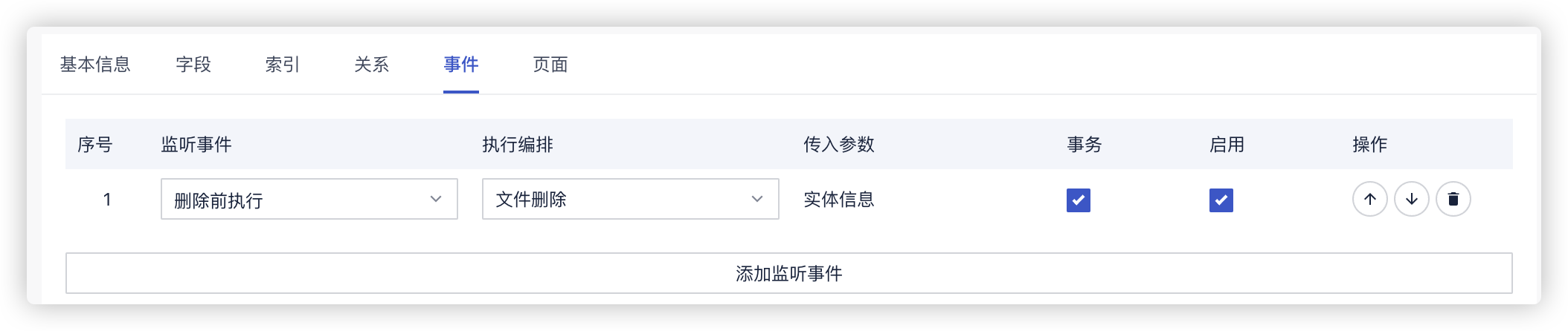 为业务对象实体添加删除前执行的事件,在实体删除之前先执行名称为文件删除的编排函数,删除文件附件。