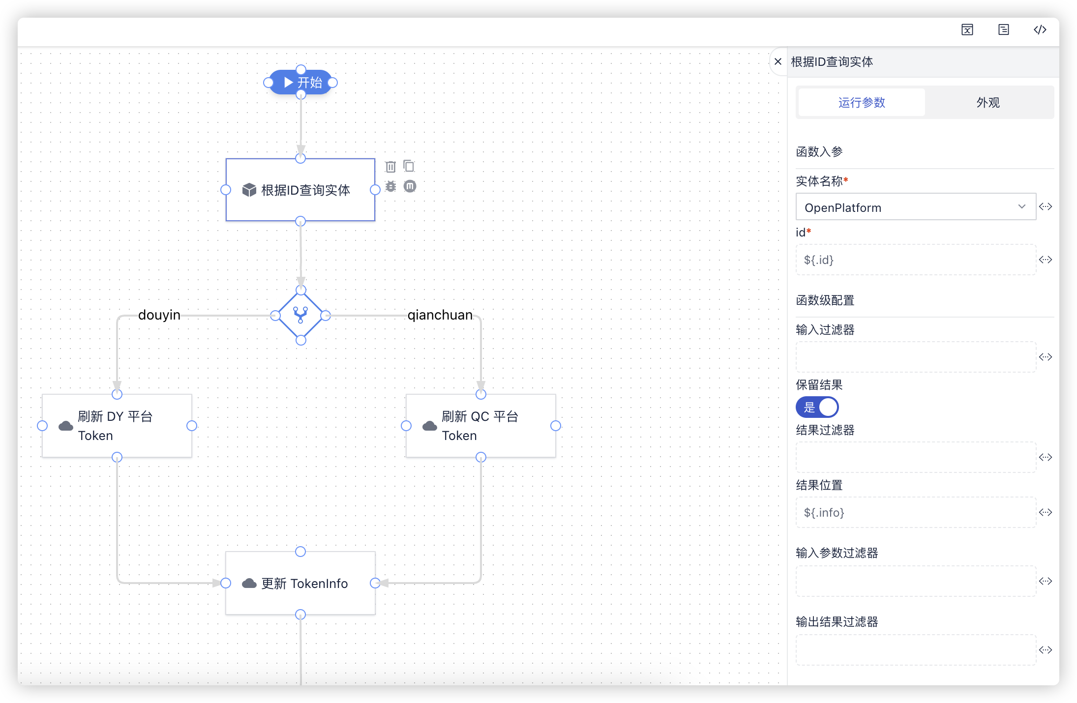 函数节点配置:选中某个节点,即可配置节点的参数。