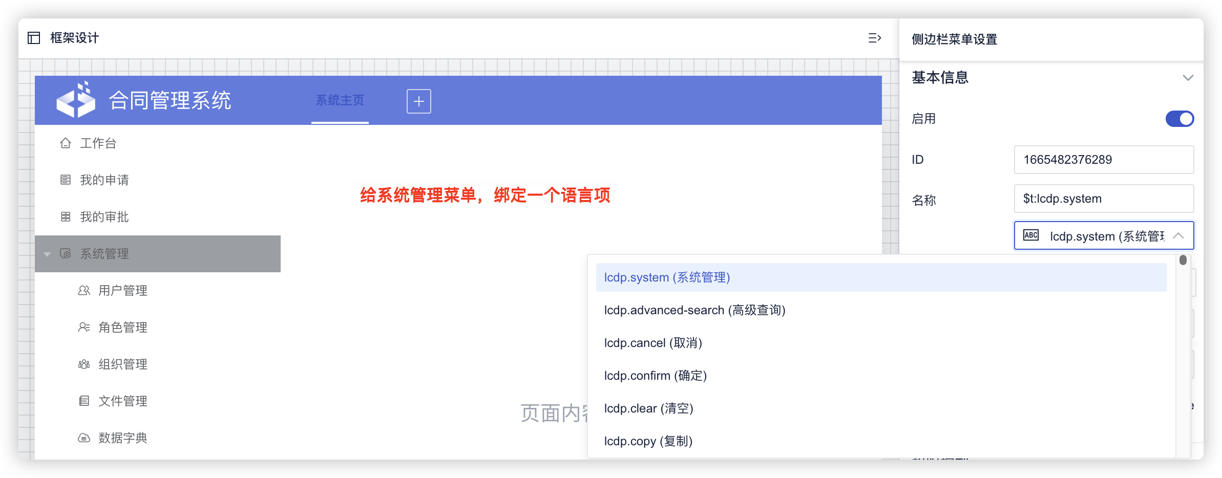导航绑定语言项,以系统管理导航为例,绑定语言项。