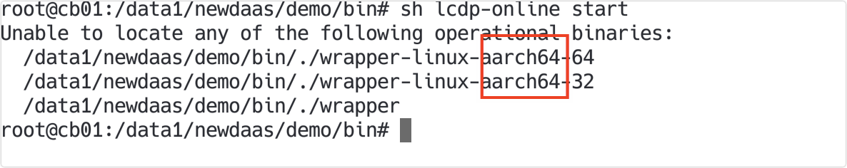 假如部署的系统是 aarch64 架构的,例如 麒麟系列主机,部署jsw包的时候可能会遇到下面的问题: